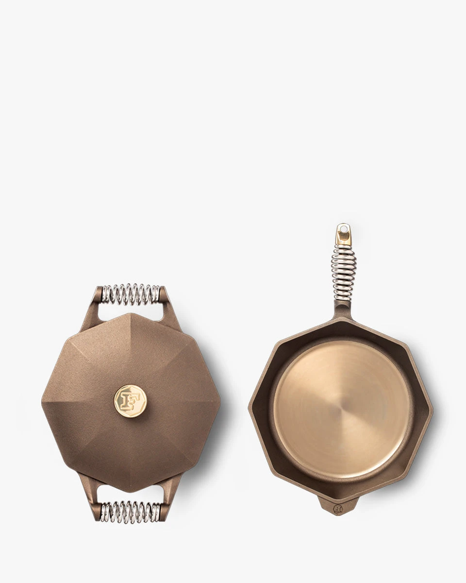 The most versatile pan you’ll ever own. The FINEX cast iron skillet is polished smooth for perfect eggs every time. It’s a searing machine for hearty steaks, chops and salmon. It’s brilliant for baking perfect cornbread, pies and cakes. Introduce a lid and it’s great for steaming, braising and simmering. From stovetop, to oven, to grill—even over the coals—the FINEX cast iron skillet is a trusted essential you’ll pass down for generations.