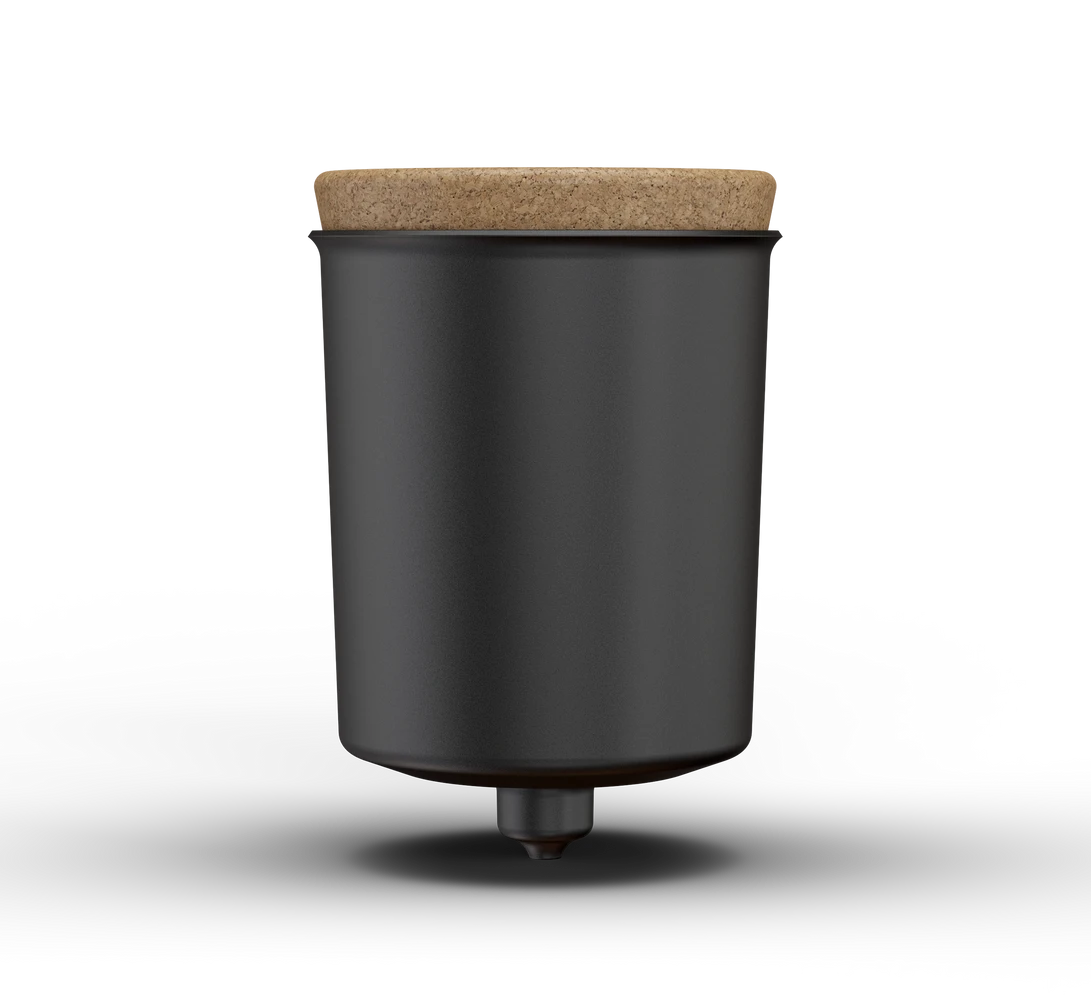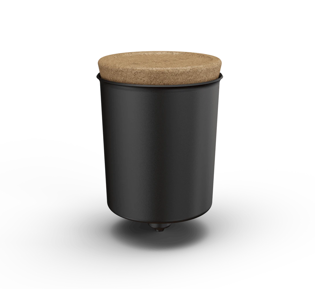 A black anodized aluminum funnel with a cork top, engineered with precision to inject just the right amount of water into the oven and create steam on entry.