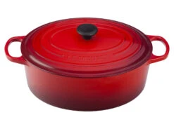The iconic Le Creuset Dutch oven is indispensable in the kitchens of home cooks and professional chefs alike. Expertly crafted from enameled cast iron, the everyday versatility of the Dutch oven makes it ideal for everything from slow-cooking and braising to roasting, baking, frying and more. The oval shape is particularly suited for larger cuts of meat, whole chickens and for baking oval-shaped loaves of bread.