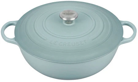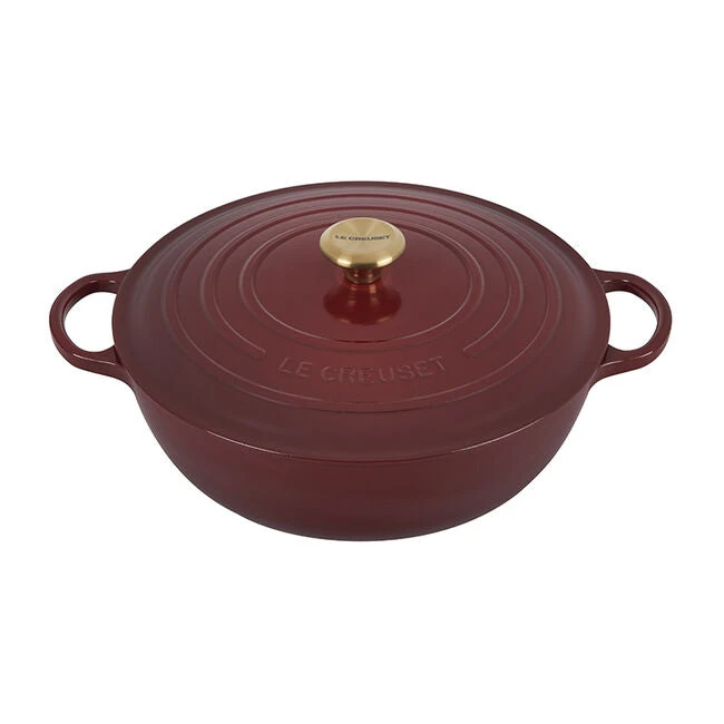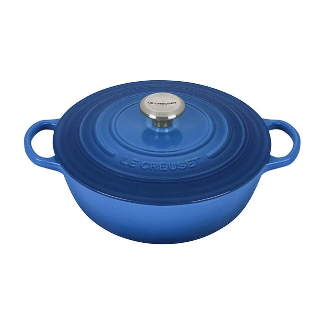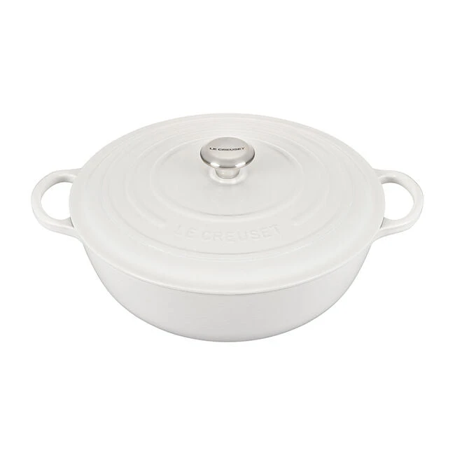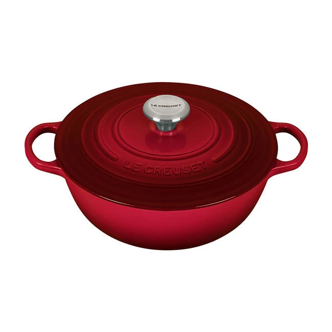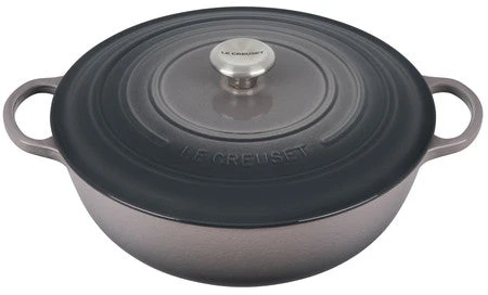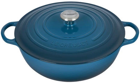 The generous size and depth of the Signature Chefโs Oven make this the ideal vessel for soups, pastas, braising and even baking. Sloped sides increase the efficiency and effectiveness of stirring by promoting continuous movement even with the lid in place, and the depth provides ample room for simmering. The exceptional heat distribution and retention of enameled cast iron locks in flavor, while large loop handles are designed for easy lifting and provide a steady grip when transferring a full pot from stove to oven to table. Durable and easy to clean, the colorful enameled surface requires no pre-seasoning and minimizes sticking and staining.