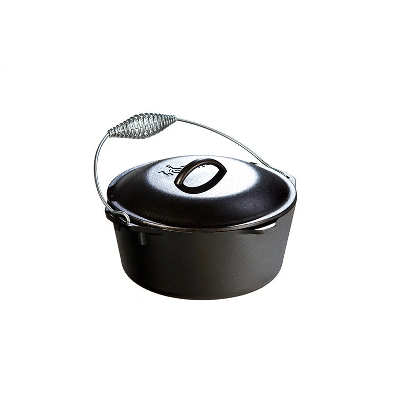 The 5qt Lodge Traditional Dutch Oven with Wire Bail handle has been popular for over a century and is perfect for camp and hearth cooking. It conducts heat evenly with no hot spots and maintains heat for efficiency and cooking control. It’s seasoned with vegetable oil and ready to use right out of the box.